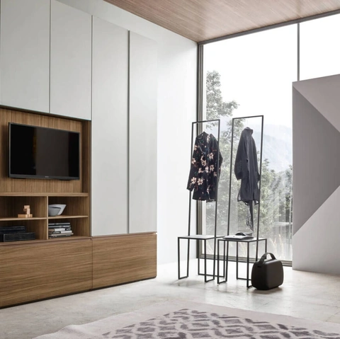 Se desideri armadi a muro con ante battenti, clicca e scopri l'armadio Step Up con anta TV girevole di Maronese in melaminico.
