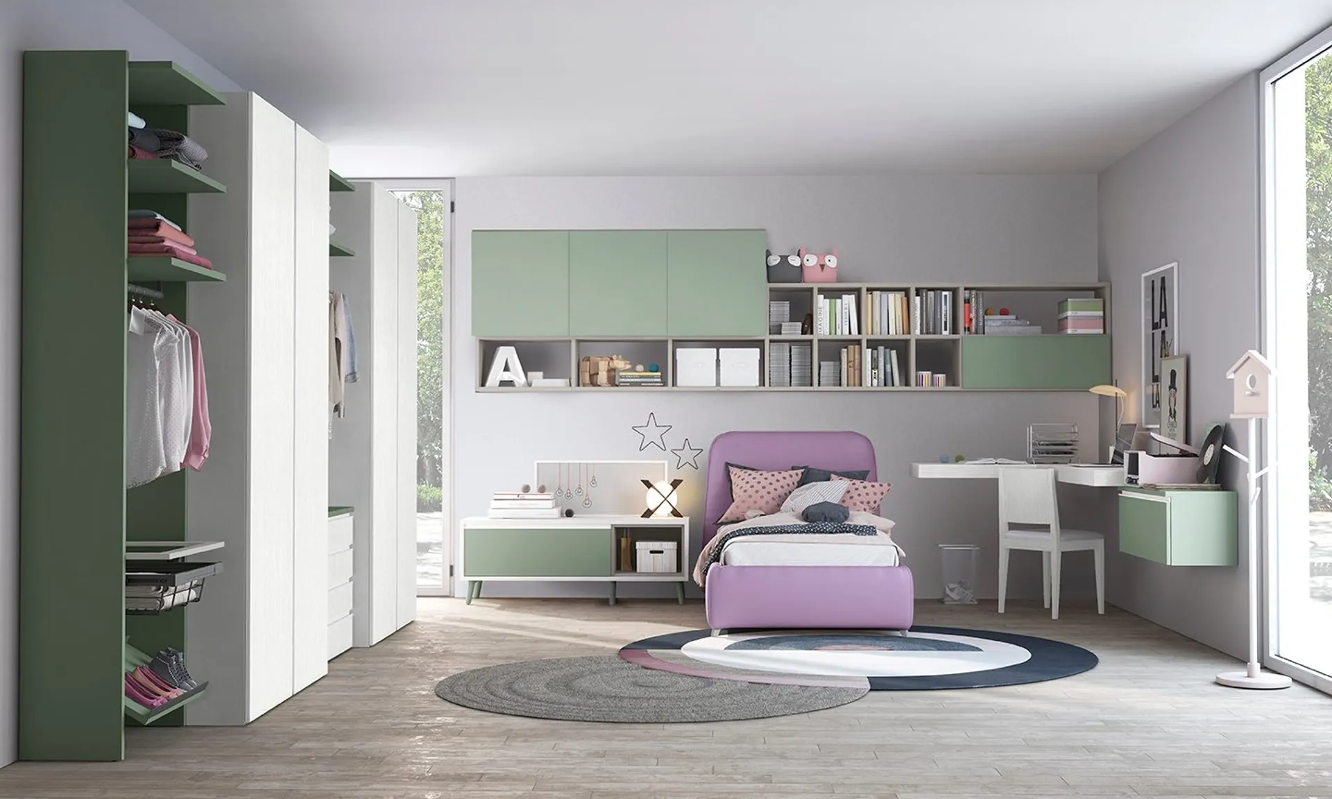 Colombini Casa offre una ricca gamma di accessori da abbinare su misura: troverai letto, guardaroba, scrivania, sedie e librerie. Nell'arredamento della stanza dei bambini affidati a noi: in negozio presentiamo tutte le più esclusive composizioni arredative moderne per la loro camera. Questa soluzione in melaminico ultima alla perfezione le doti di praticità e il valore estetico della camaretta, in quanto è capace di coniugare ergonomia e sicurezza. Porta design e colori vivaci nella stanza dedicata ai bambini con questa soluzione, una delle Camerette componibili per ragazzi di Colombini Casa.