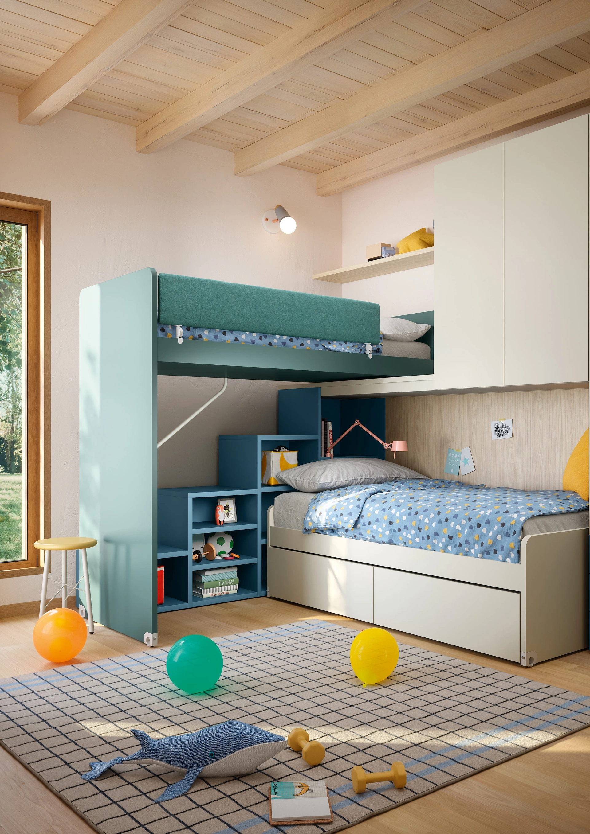 Proponiamo nel nostro showroom molteplici Camerette a soppalco moderne per bambini del brand, ideali per seguirli durante la loro crescita. I nostri bambini passano gran parte del giorno nelle loro camere da letto: rendile adatte per dedicarsi alla scuola, divertirsi e riposare tutti i giorni. Nel nostro punto vendita ti seguiamo dalla scelta dell'arredamento per la camera alla progettazione del luogo dove i tuoi bimbi cresceranno, divertendosi e sognando. Le Camerette dei nostri bambini sono il luogo in cui diventeranno grandi divertendosi e sognando, perciò è essenziale che lo spazio sia pratico.