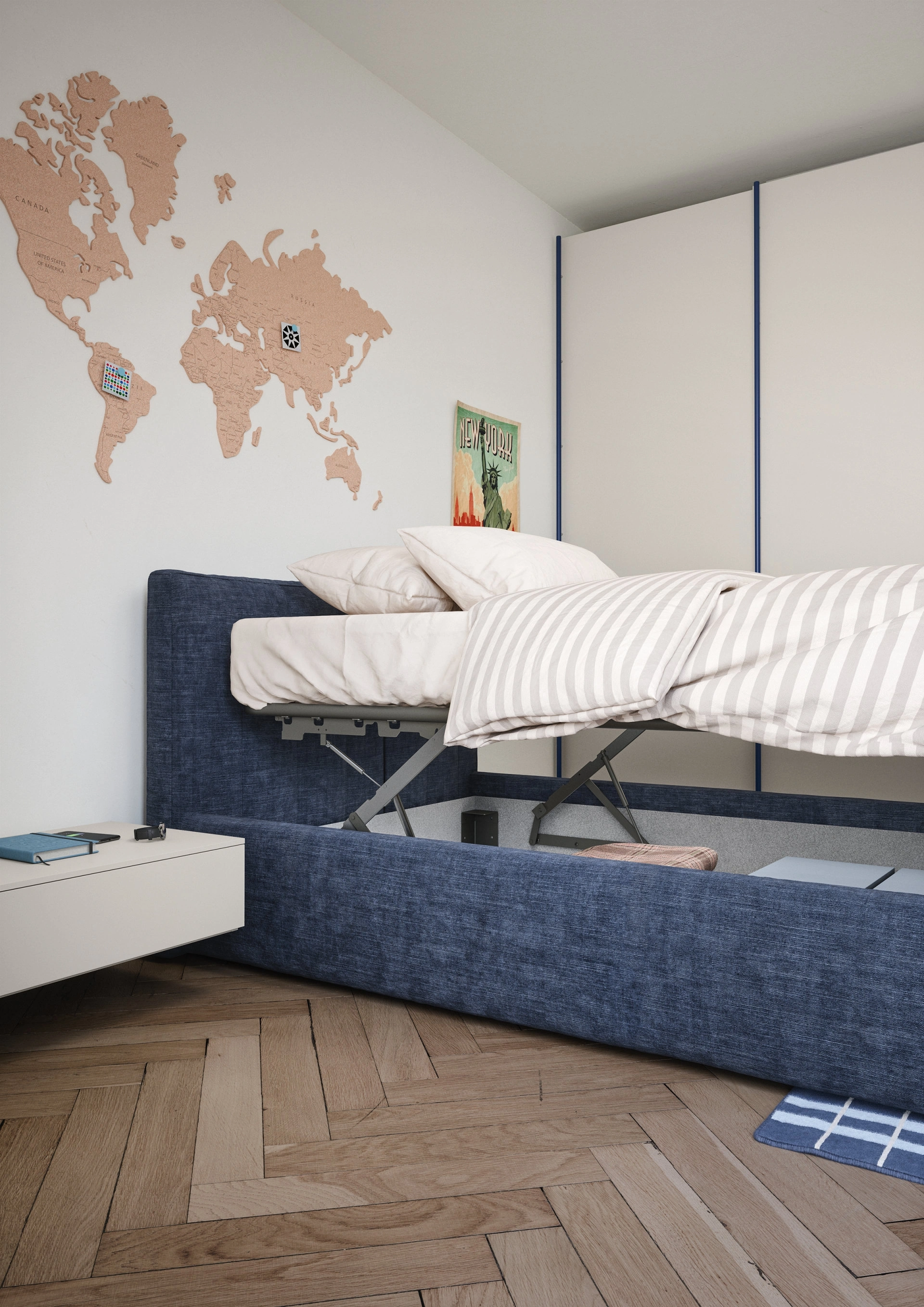 Un prodotto che rispetta le direttive di sicurezza necessarie per arredare lo spazio junior. Scopri di più sul modello in tessuto nella fotografia: contattaci per qualsiasi informazione compilando il form in basso. La cameretta dei più piccoli include tutti gli arredi per assicurare un ambiente ideale per i bambini, in cui convivono i letti moderni come questo.