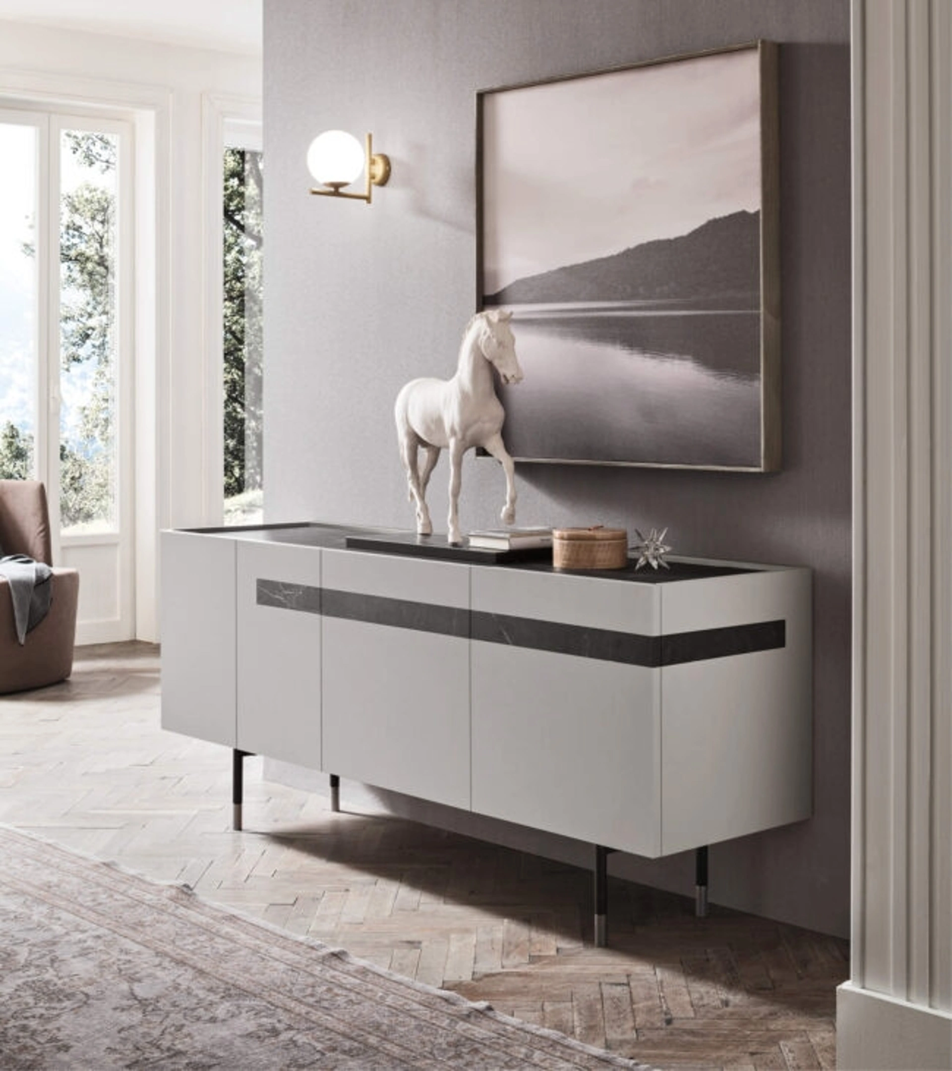 Per un soggiorno o una zona pranzo che si rispetti, prediligi questa Madia Gilda di Maronese in melaminico tra le svariate composizioni moderne del brand. L'acquisto delle Madie per la zona giorno o per la zona pranzo è vincolata allo spazio a disposizione, ma coinvolge anche lo stile del locale e le proprie esigenze. Le Madie concorrono a organizzare oggettistica assortita, libri e giornali, nonché a rendere bello il locale mixando al meglio doti di praticità e design. Tieni presente che spesso inviterai a casa familiari e amici per qualche ora in compagnia: è imprescindibile che lo spazio sia ben gestito e di grande valore estetico.