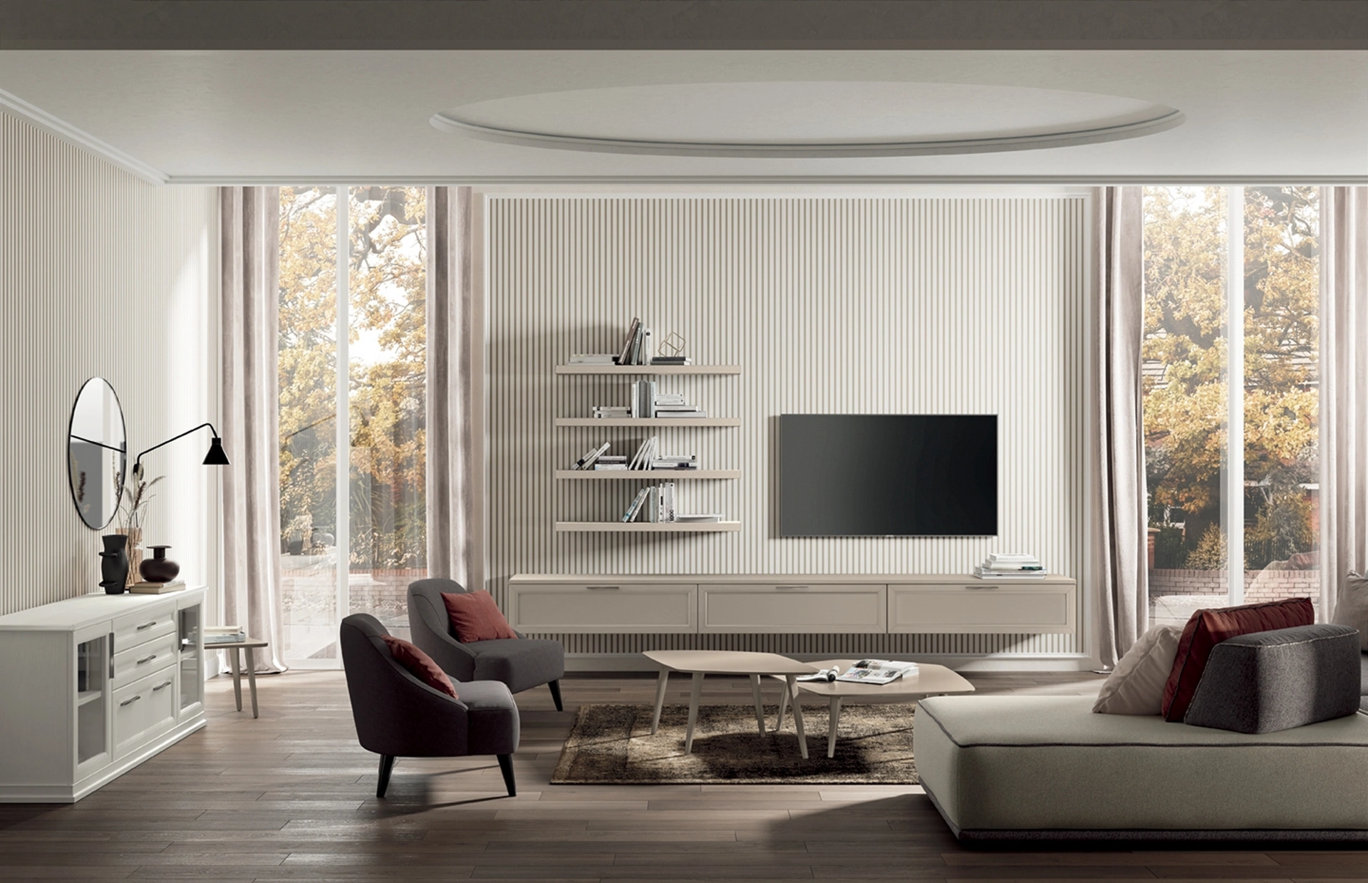 Questo modello costituisce tutta la qualità che il marchio assicura grazie a pluriennale competenza e grande dedizione nel settore dell'arredo e del design. Se cerchi mobili salvaspazio e realizzabili su misura, contattaci e scopri di più sull'Arredamento Casa delle migliori marche. Anche in un soggiorno di dimensioni contenute, questo tipo di arredo riesce a organizzare al meglio gli spazi ottimizzando ogni angolo e assicurando l'alta componibilità tipica delle soluzioni classiche. La Parete Attrezzata Arcadia AS009 di Colombini Casa nella fotografia, realizzata in melaminico, risolve le più particolari esigenze abitative di stile e spazio senza rinunciare alla ricerca estetica.