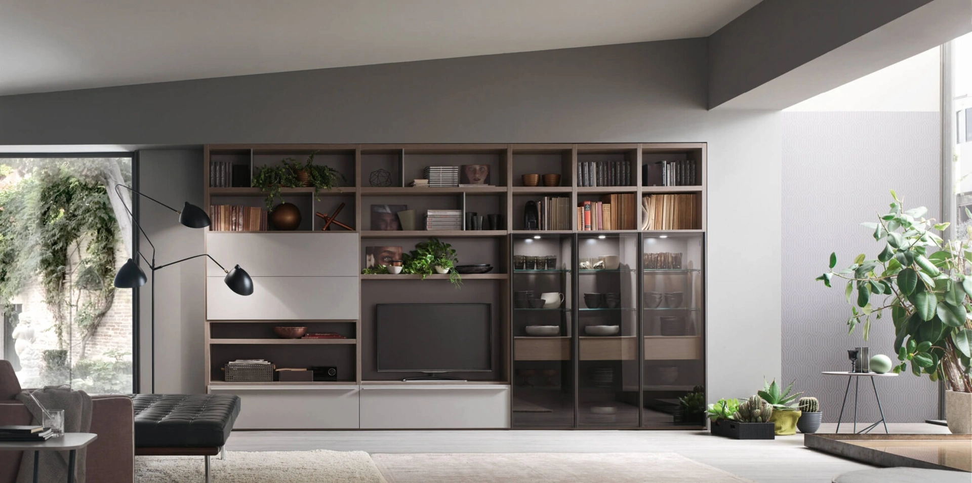 Le Pareti Attrezzate hanno conquistato un posto fondamentale nella zona giorno delle nostre case: sono arredi plurifunzionali e salvaspazio sempre realizzabili su misura. Attraverso un gioco dinamico di accostamenti fra elementi a giorno o vani chiusi, le Pareti Attrezzate moderne arredano il soggiorno valorizzando ogni spazio. Questa parete attrezzata è una delle soluzioni del marchio e ti permetterà di progettare la zona giorno secondo le più particolari problematiche abitative.