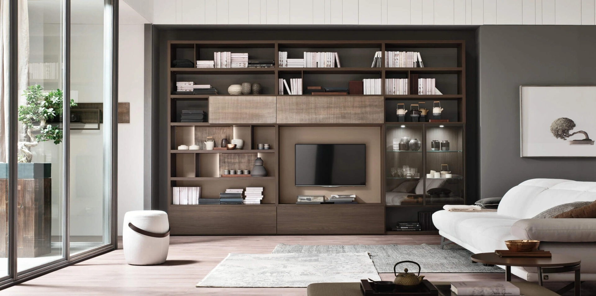 Attraverso un gioco dinamico di accostamenti fra componenti a giorno o vani chiusi, le Pareti Attrezzate moderne arredano il soggiorno sfruttando bene ogni spazio. Questa parete attrezzata è una delle soluzioni dell'azienda e ti consentirà di progettare il soggiorno seguendo le più particolari esigenze abitative. Per informazioni e preventivi sulla Parete Attrezzata Sistema Spalla Comp SA2221 di Maronese nell'immagine contattaci! Il modello proposto è realizzato in melaminico, ma grazie ad una vasta gamma di texture, cromie e conformazioni, potrà adattarsi a stili di ogni genere.