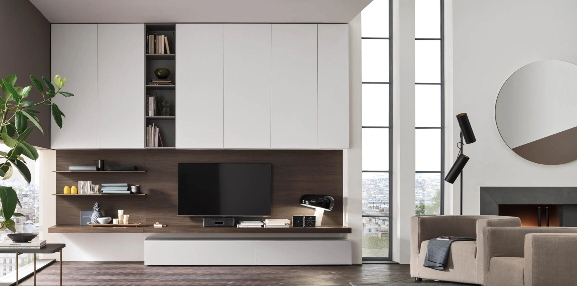 Anche in un living abbastanza piccolo, questo tipo di arredo riesce a organizzare al meglio gli spazi sfruttando bene ogni angolo e garantendo massima componibilità tipica delle soluzioni moderne. Questo modello rappresenta tutta l'eccellenza che il marchio garantisce grazie a pluriennale competenza e grande passione nel campo dell'arredo e del design. Un po’ librerie, un po’ mobili contenitori ed espositori: le Pareti Attrezzate sono ideali per organizzare uno spazio pratico e dinamico. La Parete Attrezzata Unix Comp SU2116 di Maronese nell'immagine, realizzata in melaminico, risolve le più particolari problematiche abitative di spazio e stile senza rinunciare alla ricerca stilistica.