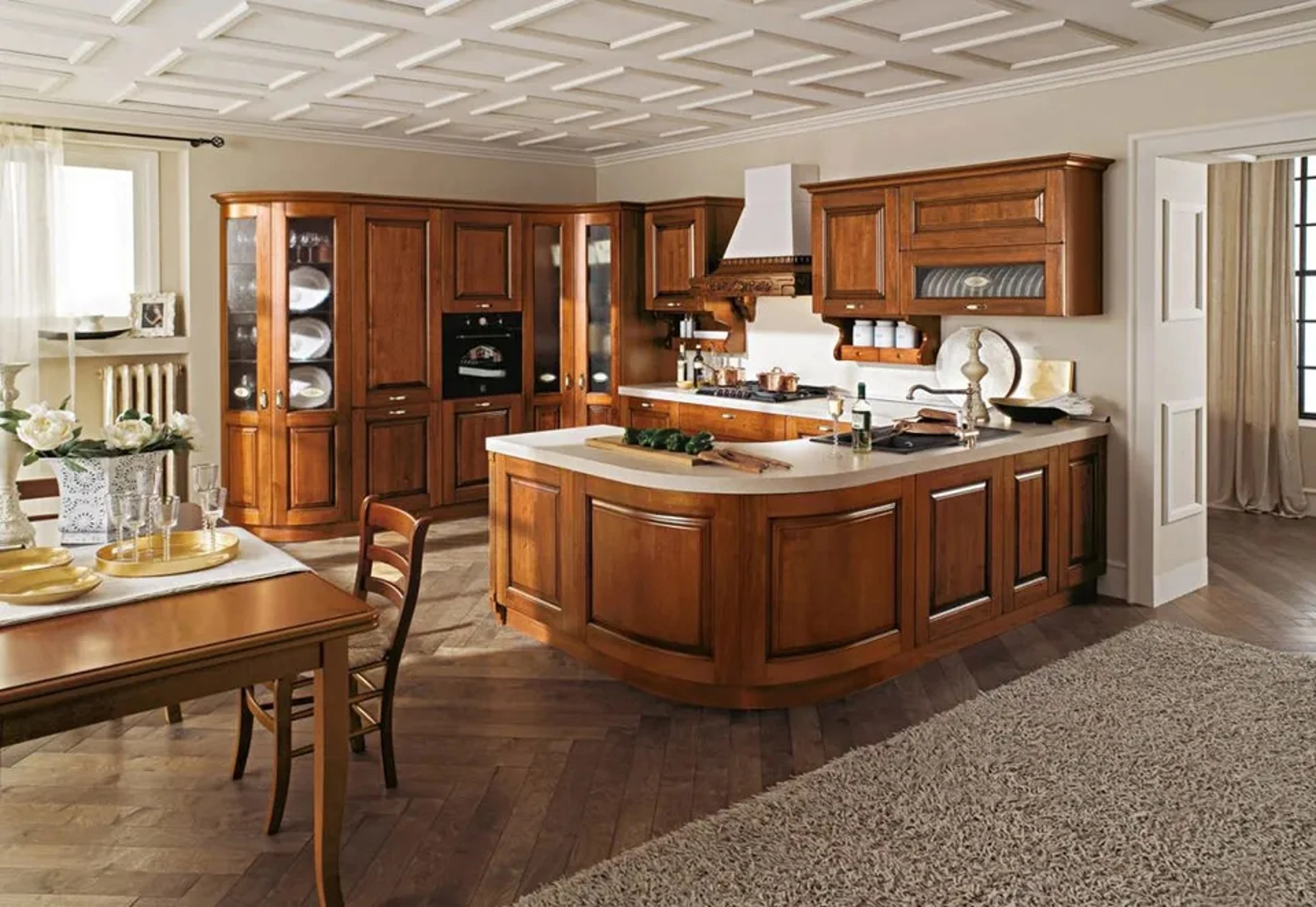 Sfruttare al meglio lo spazio oggi è possibile per merito della ricca serie di modelli con penisola di gusto classico del noto e rinomato marchio Ar-Tre. Le composizioni in legno come quella qui visibile regalano un notevole vantaggio, quello di essere parecchio resistenti, eleganti e facili da pulire. Le Cucine Classiche sono pensate per seguire tutte le problematiche abitative, possiedono linee essenziali che permettono di sfruttare bene forma e dimensioni delle stanze e un fascino senza tempo.