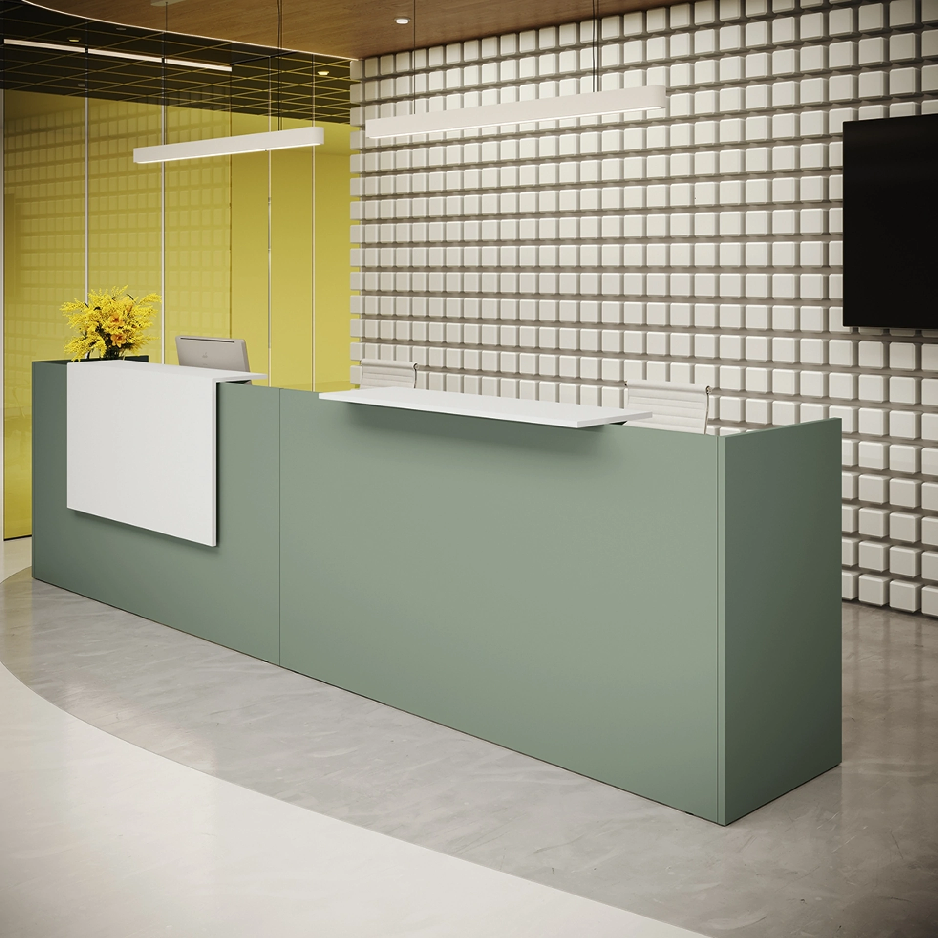 Per il tuo Arredo Ufficio assumono un ruolo di estrema rilevanza le composizioni arredative con banconi reception in melaminico, studiate per attrezzare lo spazio. In negozio puoi visionare in prima persona le più originali composizioni di Arredo Ufficio in melaminico, sempre di ottima qualità e ideali per locali di ogni tipo. Reception Color 03 di Colombini Office: è uno tra i migliori esempi di arredi per gliambienti lavorativi funzionali e belli da vedere del noto marchio. Guarda nel nostro negozio molteplici modelli di banconi reception di qualità eccellente, sempre realizzati in materiali pregiati e che resistano nel tempo.