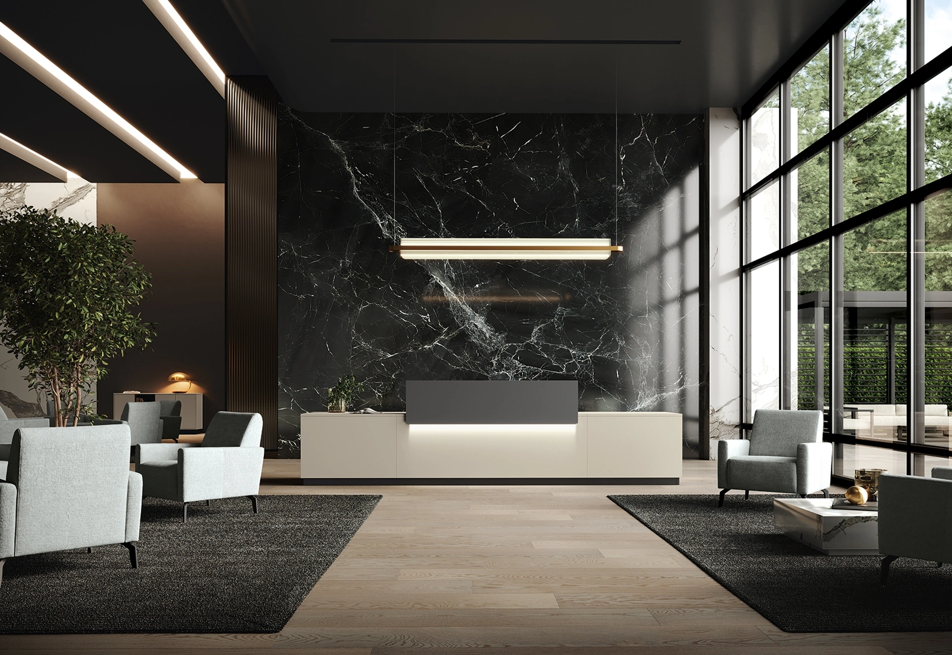 Colombini Office propone arredi di grande qualità, sempre in grado di accontentare molteplici richieste per quanto riguarda sia il valore estetico che la praticità. Da noi potrai vedere dal vivo tutte le più originali composizioni arredative di Arredo Ufficio in melaminico disponibili in commercio, sempre di grande qualità. Il modello in foto, tra i diversi modelli di banconi reception firmati Colombini Office, darà personalità e stile agli spazi, attrezzandoli coniugando razionalità e logica. Costruisci il tuo spazio lavorativo con soluzioni di banconi reception in melaminico dell'azienda: la ricca gamma di arredi per il tuo ufficio ti sta aspettando in negozio.