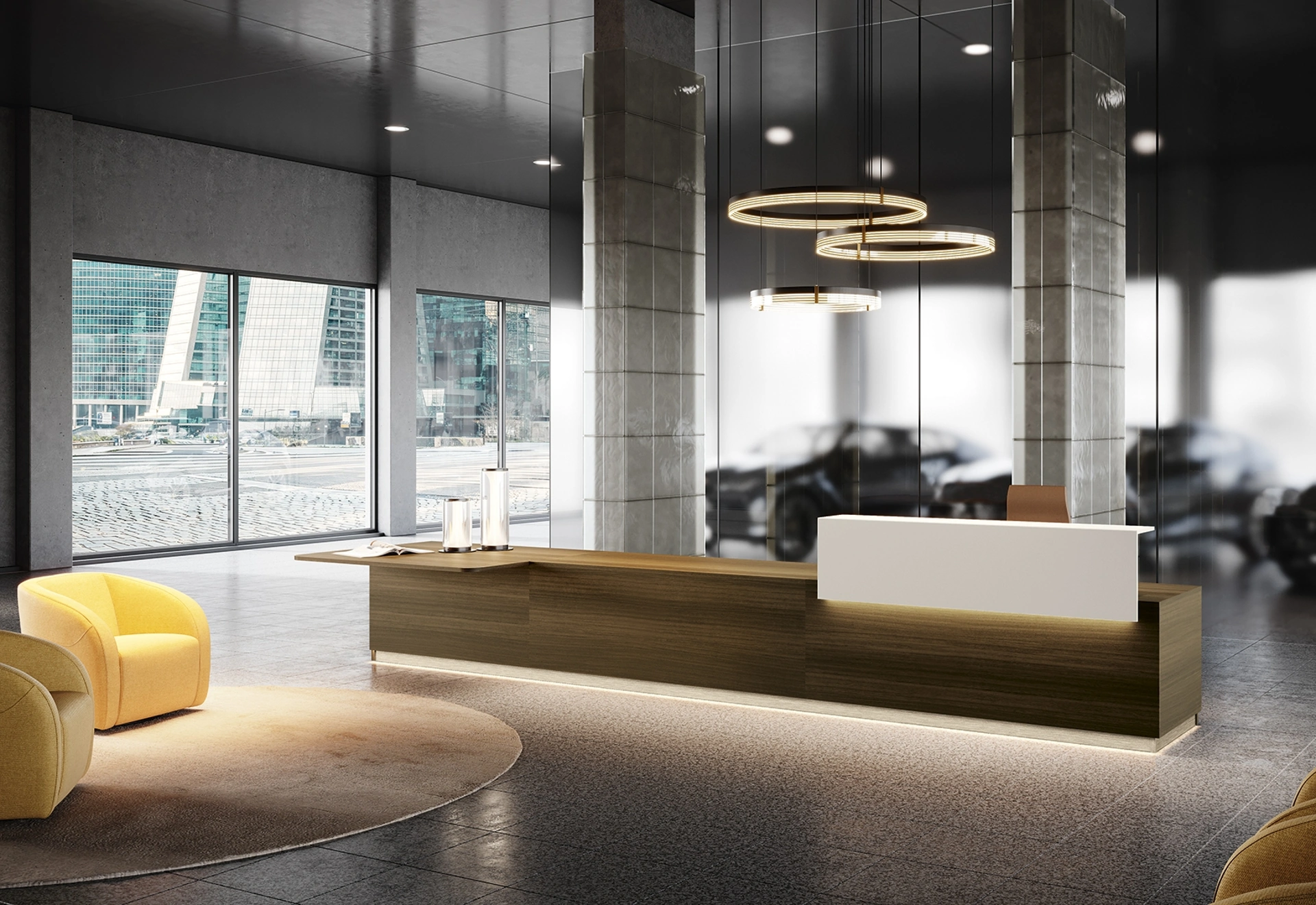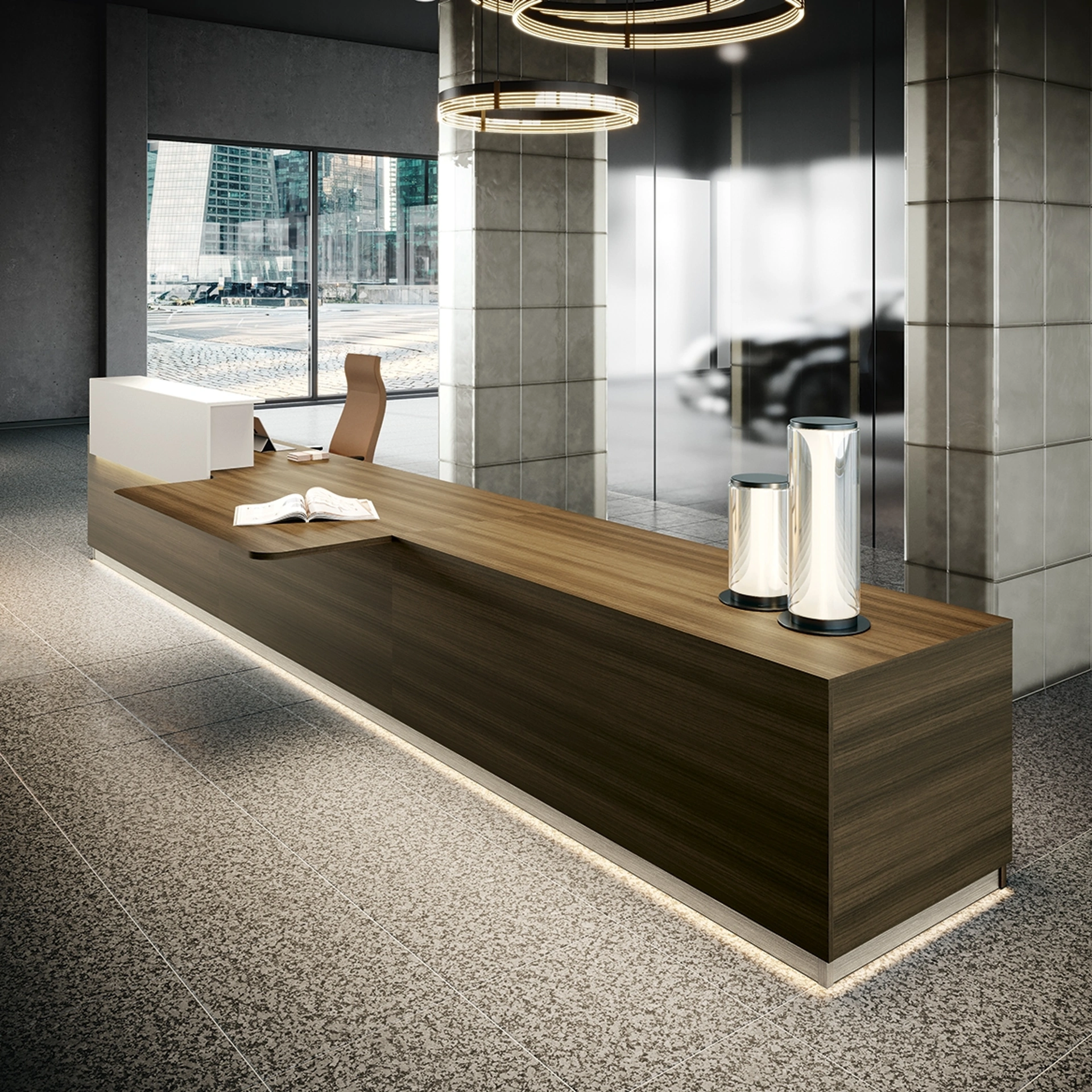 Reception Class 04 di Colombini Office: fa parte della gamma praticamente infinita di arredi per gli ambienti di lavoro del marchio, leader nel comparto dell’Arredo Ufficio. Dai forma al tuo spazio lavorativo con soluzioni di banconi reception in melaminico del brand: la completa serie di mobili per il tuo ufficio ti sta aspettando in negozio. Il modello in foto, tra i vari modelli di banconi reception firmati Colombini Office, conferirà personalità e stile agli spazi, attrezzandoli mixando logica e coerenza. Colombini Office presenta arredi di qualità eccellente, sempre capaci di soddisfare diverse richieste per quanto concerne sia l'estetica che la praticità.